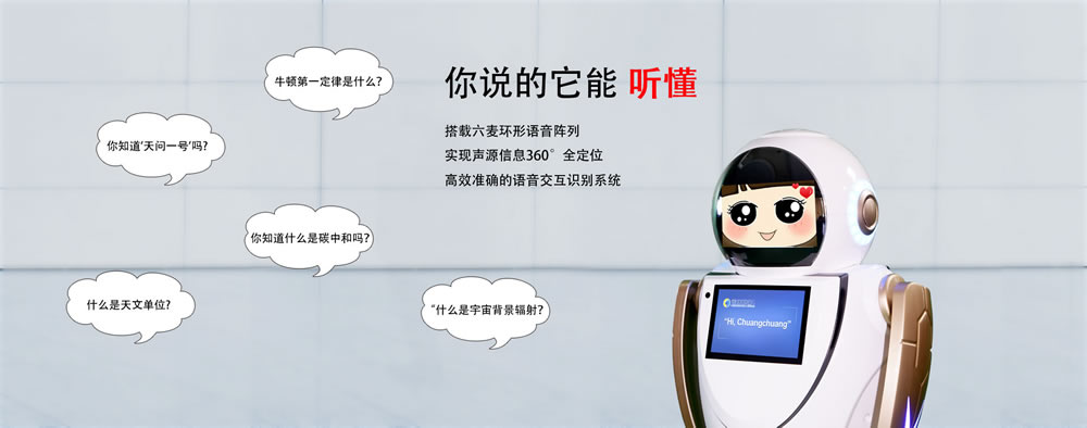 指引機器人借助云端智能知識庫平臺,實現了在語義理解、知識學習推理與表示等方面完備的智能支撐體系。釆用先進的語 音引擎,搭載環形麥克風陣列,運用聲控識別、人臉識別、情緒識別等技術為客戶提供更加人性化的交互式服務。
