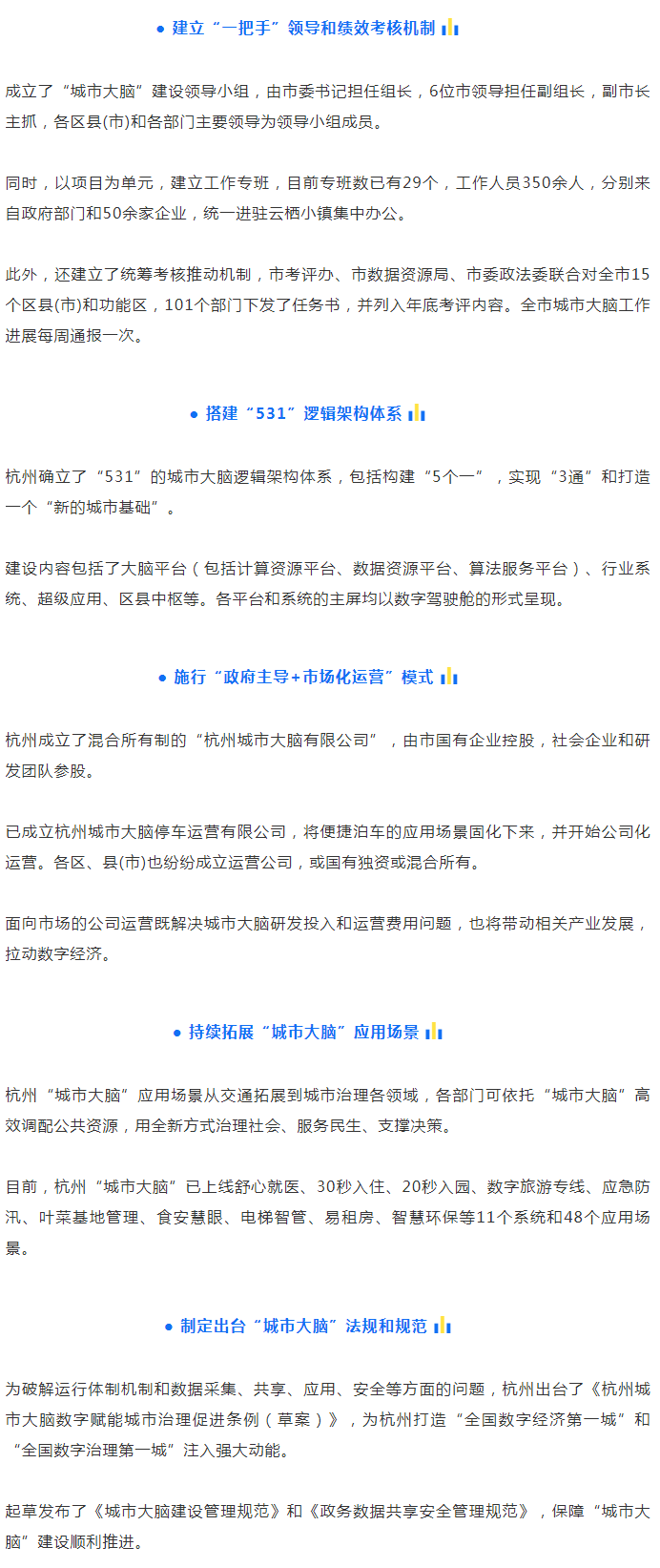 治堵取得階段性勝利后,2018年9月和12月,杭州市推出了“城市大腦升級”版,提出構(gòu)建 “以大腦中樞平臺為核心,縱向到區(qū)縣(市),橫向到各部門”的“城市大腦”,建立了市級、部門系統(tǒng)、區(qū)縣平臺和街道平臺四類數(shù)字駕駛艙,并聚焦城市治理的“痛點”“堵點”和群眾反映強烈的“熱點”“難點”問題,推出了11大系統(tǒng)和48個應用場景,“城市大腦”在城市運行的生命體征感知、公共資源配置、宏觀決策指揮、事件預測預警、“城市病”治理等方面發(fā)揮了重要作用。