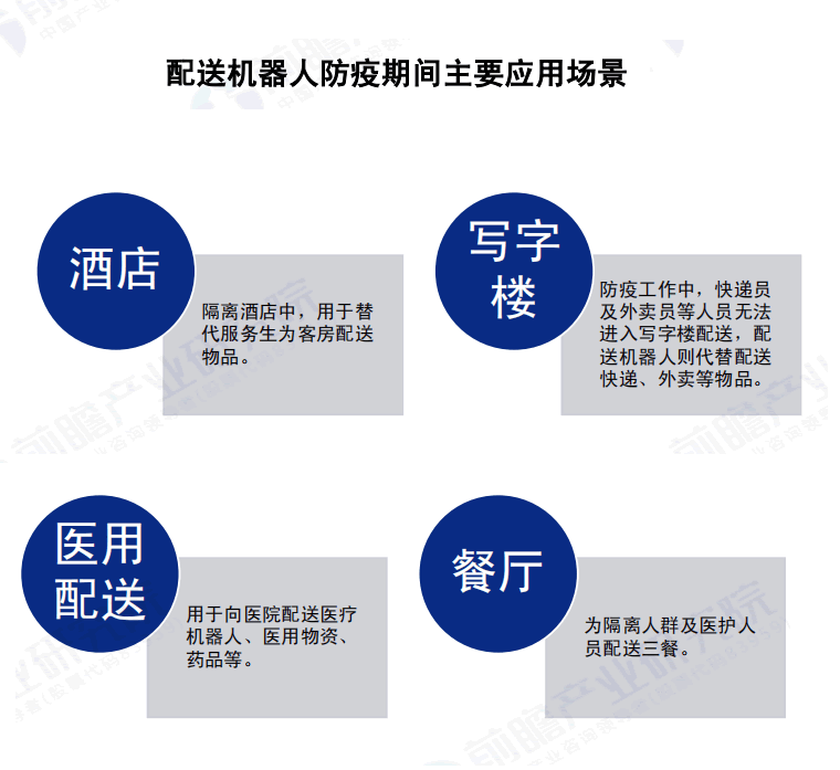 防疫機(jī)器人在配送L域主要企業(yè)有普渡科技、擎朗智能、賽特機(jī)器人、云跡科技等企業(yè),要應(yīng)用 于疫情防護(hù)中的醫(yī)用配送、餐飲服務(wù)、樓宇無(wú)人化配送等工作