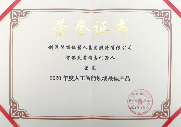 日前,由賽迪網、《數字經濟》雜志主辦的2020創新影響力年會暨2020影響力百強成果展在線上舉行。賽迪網正式揭曉2020創新影響力成果,并對2020年具有影響力的創新成果進行選評總結,旨在為政府提供決策參考,為行業遴選典型案例,為企業提供展示舞臺,為用戶推薦優秀產品及解決方案、成功案例。創澤集團智能滅菌消毒機器人榮獲“2020年度人工智能L域佳產品”稱號。