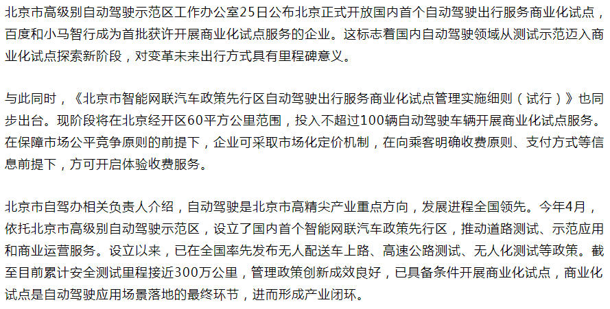 北京經(jīng)開區(qū)將每年重點支持10個以上G水平新一代信息技術(shù)應(yīng)用示范項目,G給予1億元資金支持,推進(jìn)新一代人工智能重大場景應(yīng)用示范區(qū)建設(shè)