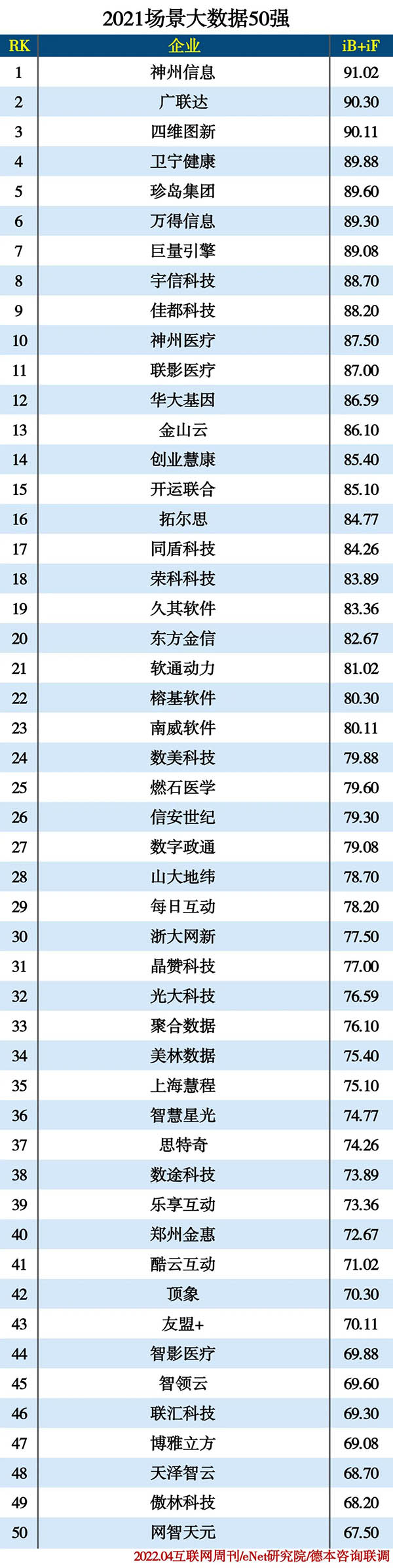 2021場(chǎng)景大數(shù)據(jù)50強(qiáng)