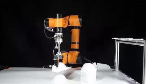利用柔性抓取工具配合輕型協作機械臂,研發出N95口罩自動化分揀系統,可以快速部署在口罩生產線上,代替人工分揀。