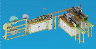 研發全自動平面型醫用外科口罩生產線及全自動折疊型醫用口罩生產線,實現卷材上料、折疊壓合、鼻梁筋上料、口罩成型、口罩切斷、耳帶上料及焊接、成品下料等工藝的全自動化生產。