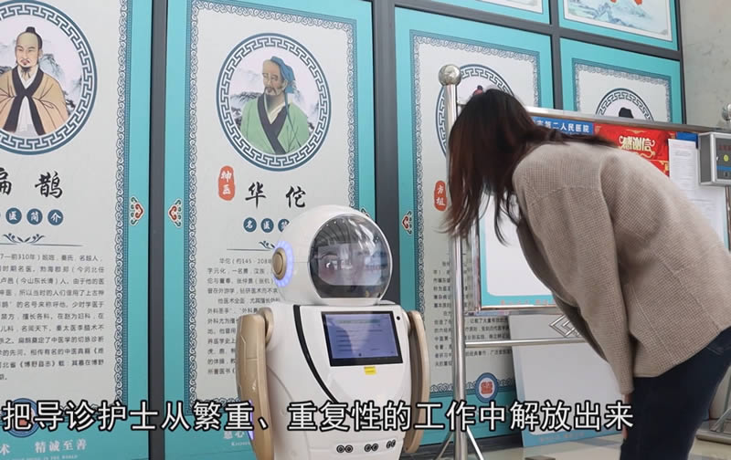 在縣人民醫(yī)院中, 智能導診機器人為前臺為用戶提供了便捷化服務。