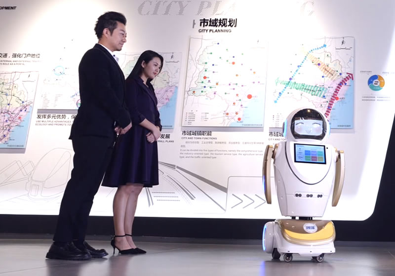 智能迎賓導覽機器人人裝備先進的計算機語音處理系統,其自身配備了自然語音庫和行業專業語音庫,可適性強,適用于各年齡段游客,并且能夠提供準確回復游客問題,具備學習功能,對游客提出的問題,通過數據庫進行分析解答。同時機體內還含有探測雷達,機器人可根據探測到的數據,引導通過電腦內部錄入的地圖規劃路線,實現對游客零失誤引導。