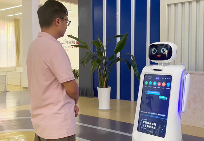前臺(tái)接待機(jī)器人為多種類型的單位(如餐廳,商場(chǎng),展廳,接待室,機(jī)場(chǎng),車站,圖書館,學(xué)校等)完成前臺(tái)接待工作,按照設(shè)置好的路線提供講解服務(wù),隨時(shí)解答訪客提出的相關(guān)問(wèn)題